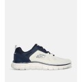 Mejora tu juego de calzado con las zapatillas deportivas Skechers Track Broader en una combinación adaptable de colores Off White/Navy. Estos entrenadores cuentan con una cómoda plantilla acolchada Memory Foam para una experiencia lujosa y de apoyo. Elaborados con materiales 100% veganos, combinan estilo con respeto al medio ambiente. La entresuela acolchada flexible mejora la comodidad general. Estas zapatillas se pueden lavar a máquina y cuentan con la marca en el costado y la lengüeta para darle más estilo. Mejora tu colección de zapatos con este par cómodo y moderno.