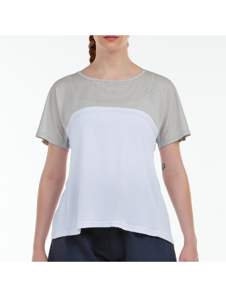 Ligera en tejido de poliéster, combina tejidos de punto liso y efecto rayado, enriqueciendo así la prenda.